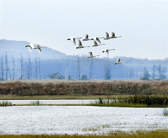 天鵝蹁躚 生態畫卷 “雙節”同慶暖鄰里